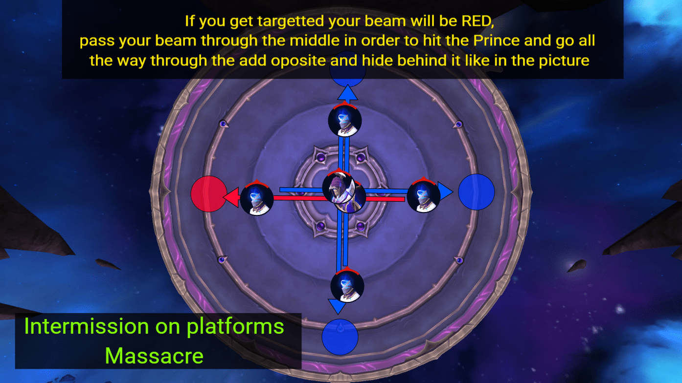 Again, nothing fancy here, make sure that you set up your interrupt rotation for the Prince and that all dps is funnelled to the Titan, the rest will die from cleave and Prince will die from cleave and massacres, below is a pic explaining how to position massacres.